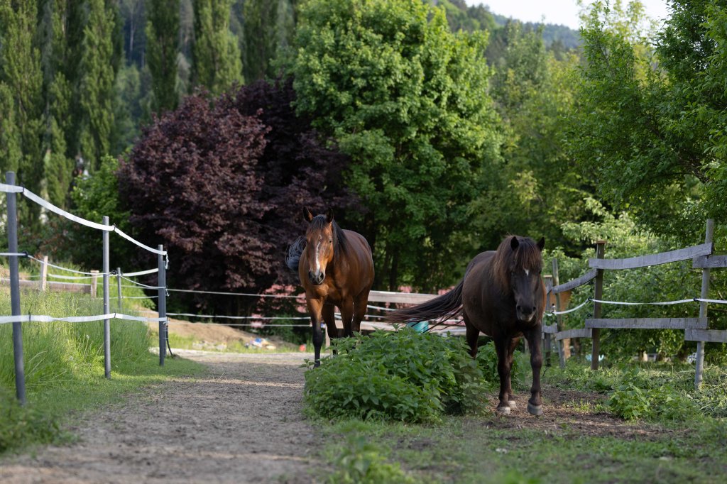 Wir befinden uns am Rande von St. Donat mit Reitwegen Richtung Burg Hochsterwitz/Launsdorf/Längsee bzw. Magdalensberg/Zollfeld/Maria Saal oder zur Glan/Glanradwege.