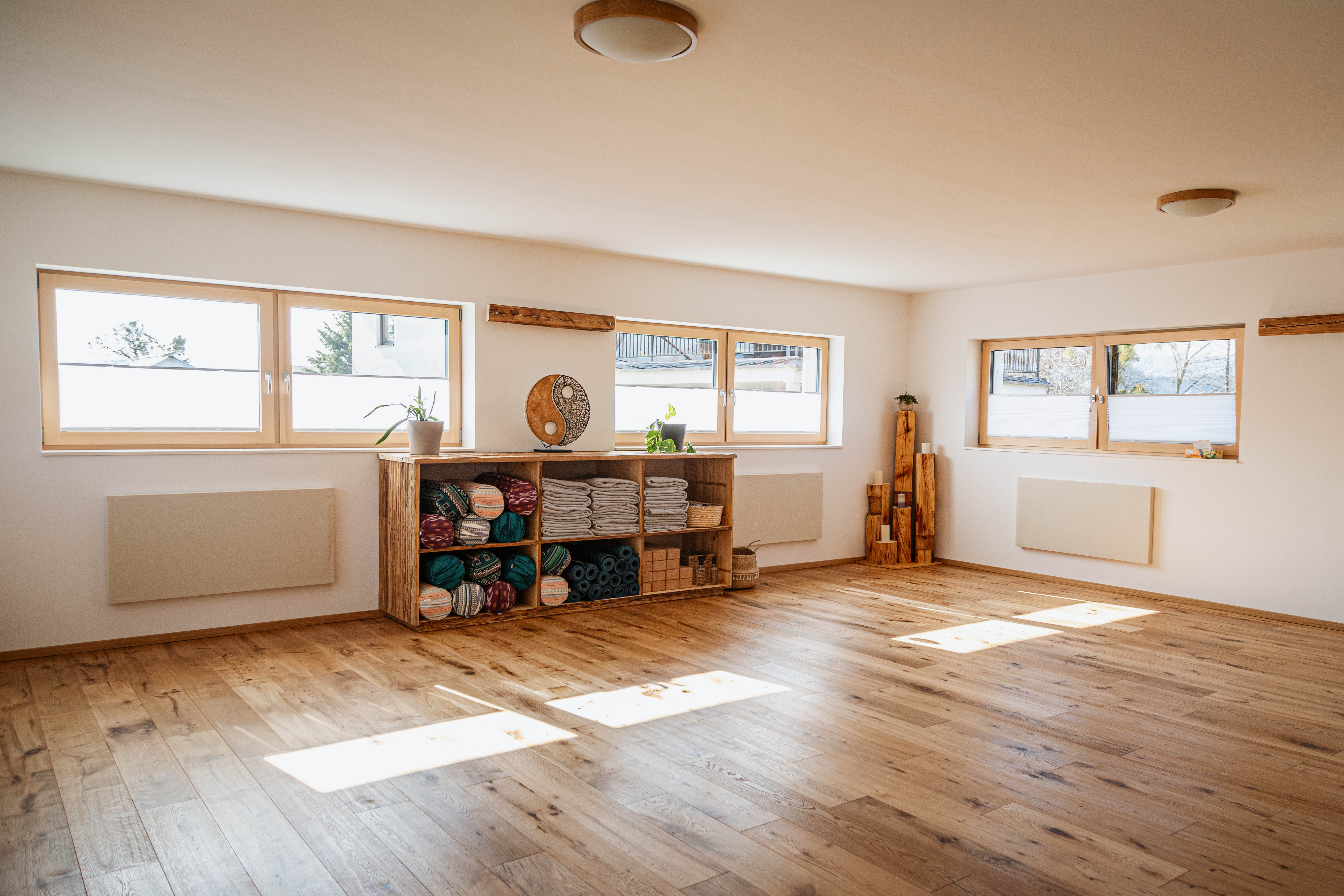 In unserem Angebot findest du Einheiten mit unterschiedlichem Ausrichtungen. Mal stehen kraftvolle รbungen und FLOWS im Mittelpunkt, die dich aus der Komfortzone locken, vielleicht sogar ins Schwitzen bringen. Mal steht ENTSPANNUNG im Vordergrund, das Langsame, das Ruhen, der Genuss von STILLE.